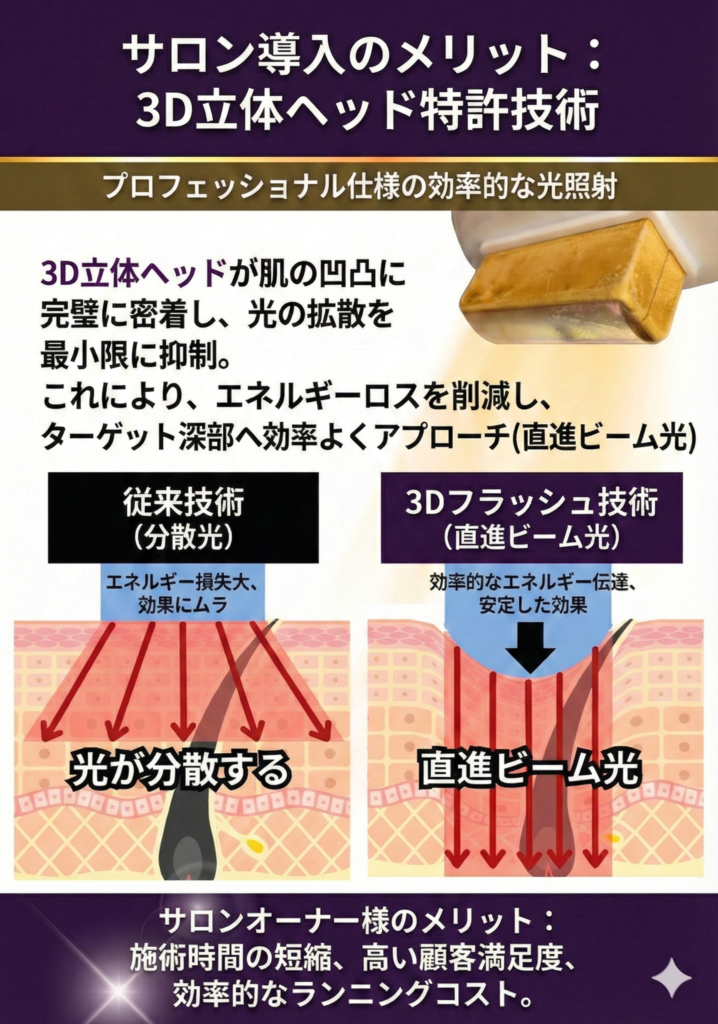 次世代3Dフラッシュ脱毛 誕生 2025.09.042026.02.17 会社概要 「3Dフラッシュ体験」に申し込み(全国無料) ご希望の内容にチェックして下さい 痛くない脱毛の体験希望ご質問資料請求 店名(会社名) お名前 (必須) 郵便番号 都道府県 住所 ※資料請求の方はご住所を必ず入れてください 建物名・号室など 電話番号 (必須) メールアドレス (必須) 業種 (必須) エステ理容・美容室接骨・整骨院鍼灸院整体・カイロその他 その他の業種 お問い合わせ内容 このサイトはreCAPTCHAによって保護されており、Googleの プライバシーポリシーと 利用規約が適用されます。 ※送信後の確認メッセージが表示されない場合があります。 申込確認メールにて内容をお確かめ下さい。